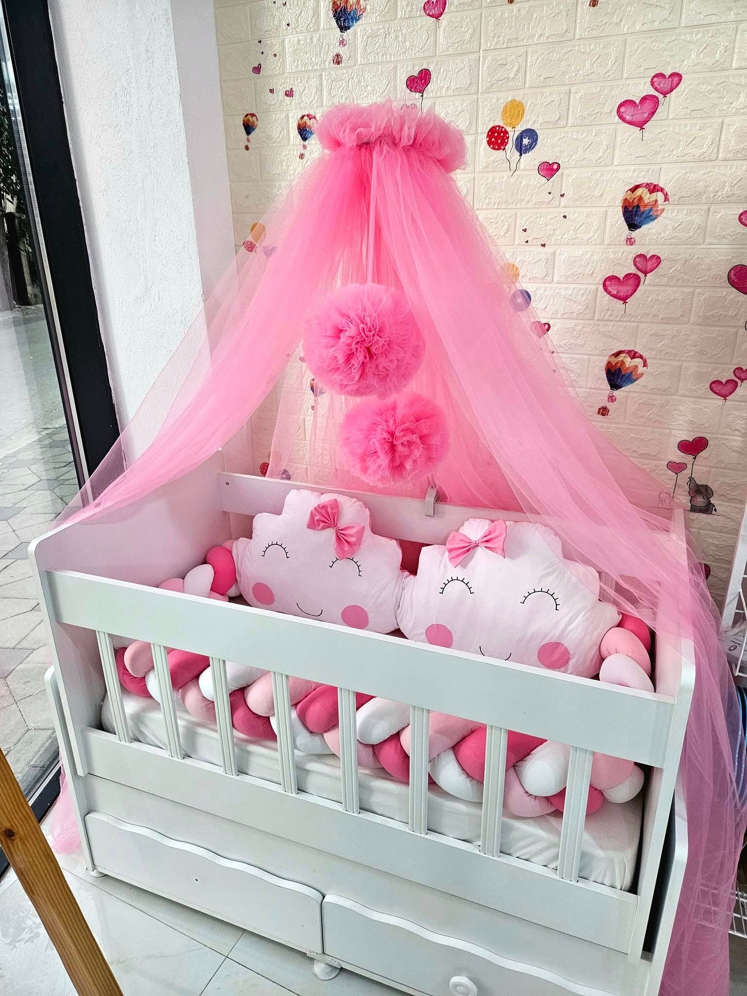 Нашите изработки се за креветчиња со димензии 60×120, но можеме да ги изработиме и по ваши димензии и бои,